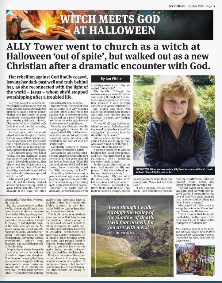 My story has been featured in various Christian, secular and Spiritualist magazine articles, newspapers, a site of the leading Occult awareness ministry of 30 years in the UK, one of the leading Occult awareness sites in USA, other well known ministry websites and blogs. (Most of these people listed, have appeared on TV – please see the links).