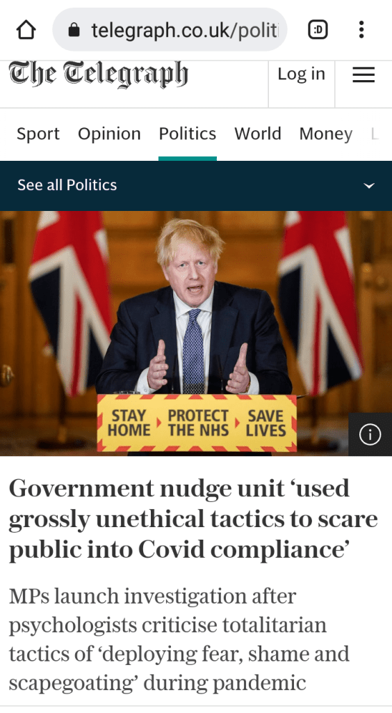 UK mainstream newspaper, The Telegraph: Grossly unethical G0vernment ‘Nudge Unit’ accused of scaring the public over Cov!d.