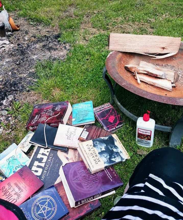 Burning Altar Table and Witchcraft Paraphernalia