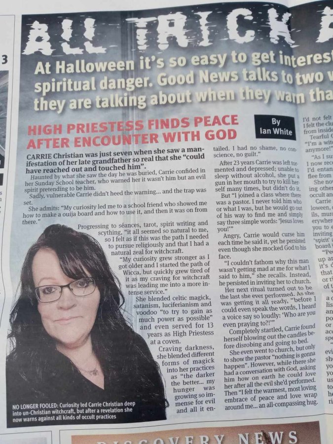 • Halloween Article by Ex Spiritualist Laura Maxwell: UK’s Good News Paper.